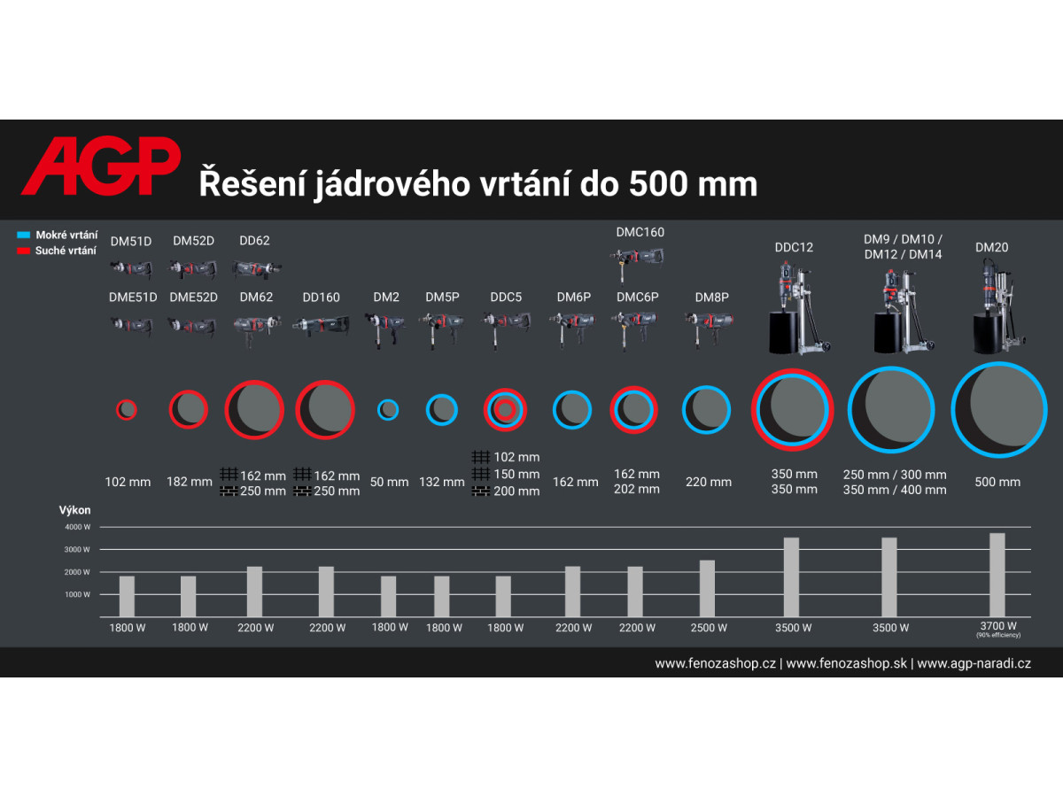 Diamantový jadrový vrták za mokra AGP ECE PROFI (Ø42 až 300mm, L 450mm) 1-1/4"
